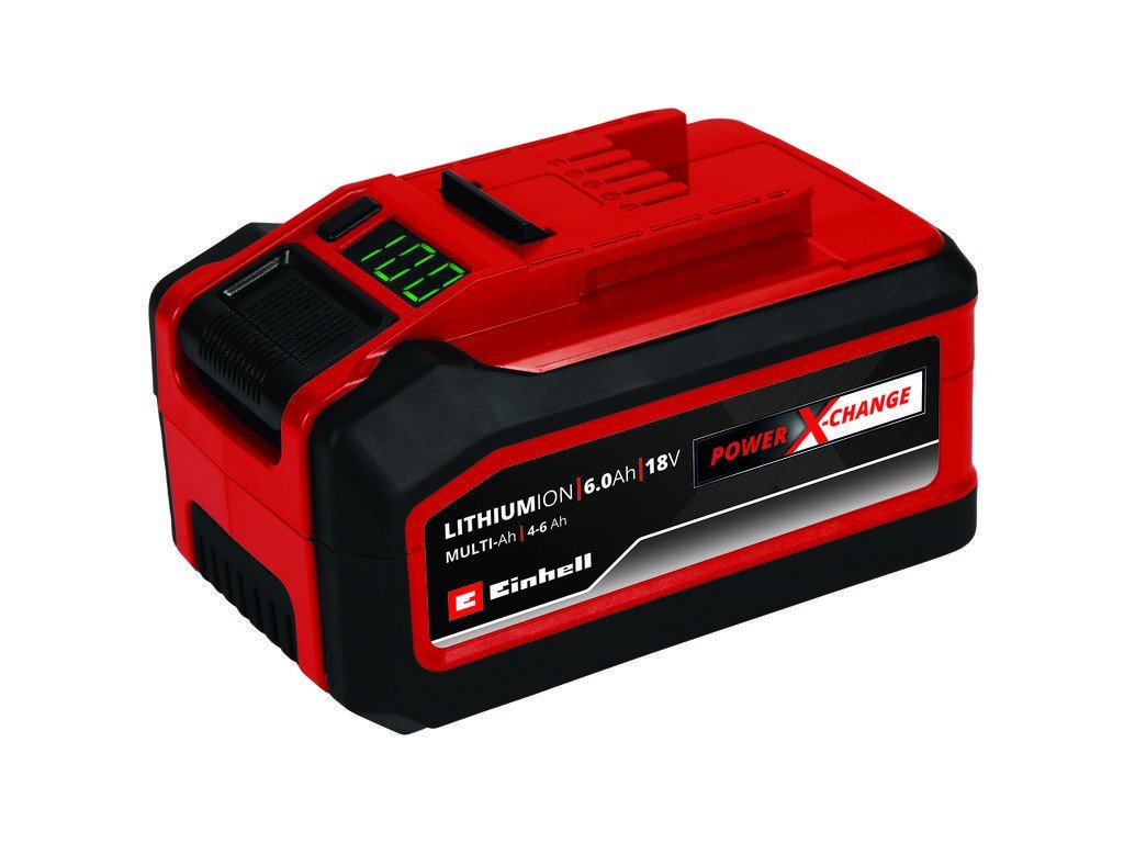 Einhell 18V 4-6 Ah Multi-Ah PXC PLUS je součástí multifunkčního a kombinovatelného bateriového systému Power X-Change od firmy Einhell. Univerzálně použitelné baterie Power X-Change poskytují energii a výdrž všem akumulátorovým nástrojům z celé rodiny produktů v zahradě a dílnách. Výhody pro zákazníka jsou zřejmé: Díky jedné baterii a jedné nabíječce pro všechna zařízení ušetříte nejen značné náklady na nákup, univerzální použití je navíc šetrné k životnímu prostředí a zároveň nabízí flexibilitu v domě i na zahradě. Pryč je také nepořádek nebo chaos s širokou škálou baterií a nabíječek pro každé jednotlivé zařízení. Díky technologii MULTI-Ah jej lze provozovat jako 6Ah baterii pro maximální výdrž a jako 4Ah baterii pro 3x delší celkovou životnost. Nejnovější generace lithium-iontových článků vytváří o 100% více energie pro maximální výkon při všech aplikacích. Technologie PLUS navíc znamená extra výkon pro vysoce výkonnou práci. Vysoce kvalitní baterie navíc odolá paměťovému efektu a obvyklému samovybíjení baterie pro konstantní vysoký výkon. 18V 4-6 Ah Multi-Ah Power X-Change PLUS je špičková baterie z rodiny Power X-Change a je také vhodná pro použití TWIN-PACK během 36V aplikací. Procesem řízený aktivní systém řízení baterie ABS neustále sleduje parametry baterie pomocí mikroprocesoru. Tím je zajištěna nejvyšší úroveň zabezpečení, optimální výkon zařízení, maximální doba běhu a maximální životnost. Přesný aktuální stav nabití v % lze zkontrolovat na digitálním displeji. Pouzdro díky své konstrukci odolává prachu, korozi a mechanickým vlivům. Pryžový povlak poskytuje baterii vysokou úroveň ochrany proti nárazu a zlepšuje přilnavost. Pomocí držadla jej lze snadno sejmout ze všech zařízení.