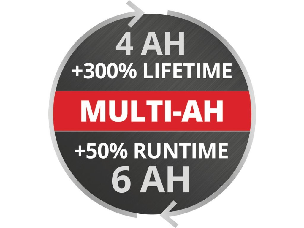 - Technologie MULTI-Ah: 6Ah balení pro max. nabití nebo 4Ah balení