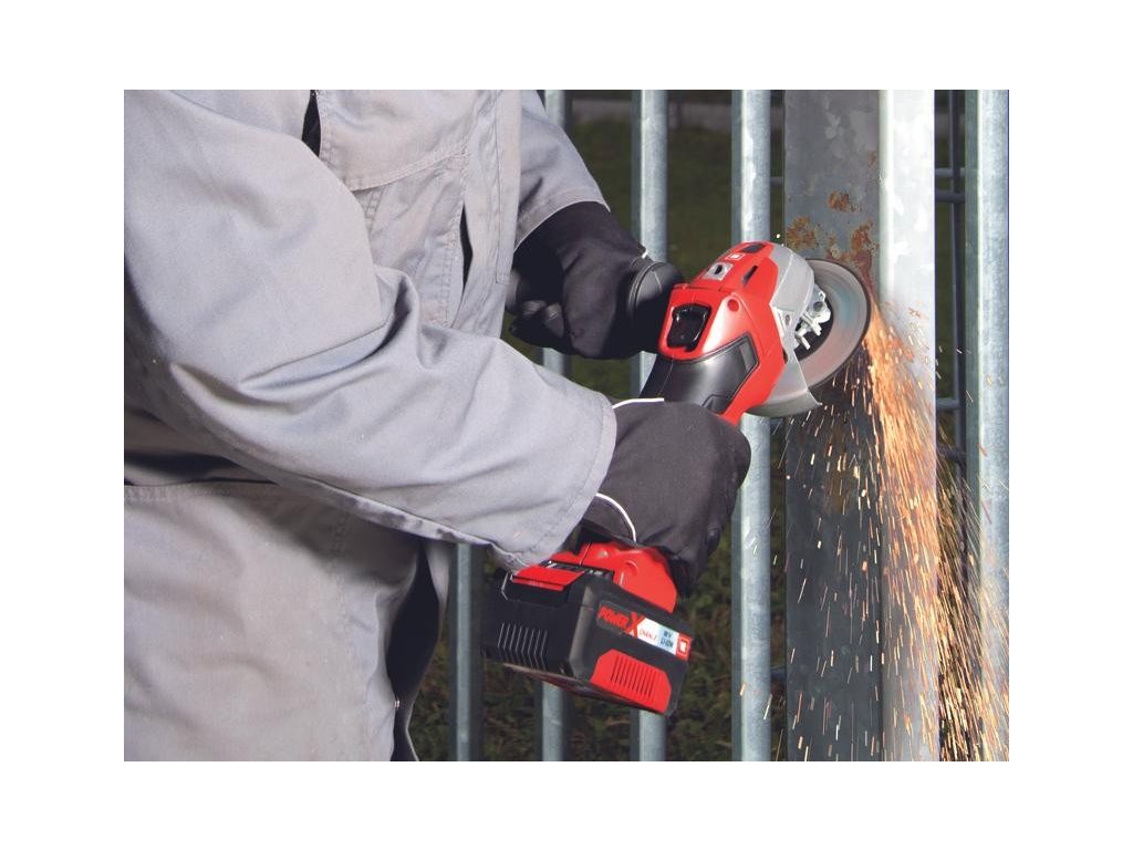 Úhlová aku bruska Einhell TE-AG 18/115 Li je jako nejlehčí úhlová aku bruska ve své třídě nezbytným pomocníkem pro nejrůznější broušení a řezání. Díky robustnímu hliníkovému krytu převodovky a oddělení motoru a převodovky je umožněn velmi klidný chod. Díky pozvolnému startu a ochraně proti opětovnému spuštění má úhlová aku bruska jemný rozběh a zaručuje zvýšenou bezpečnost uživatele. Štíhlý design s ergonomickým měkkým úchopem a přídavná rukojeť, kterou lze flexibilně namontovat do tří poloh, umožňují pohodlnou manipulaci s přístrojem. Upravené vedení vzduchu zajišťuje optimální chlazení přístroje a provoz šetrný vůči převodovce. Ochranný kryt kotouče lze během okamžiku přizpůsobit každému úkolu díky rychlému nastavení. Ochrana proti přetížení zároveň zajišťuje zvýšenou bezpečnost a dlouhou životnost. Díky výkonné a lehké systémové 3,0 Ah baterii Power X-Change nabízí bezkabelová úhlová bruska kdykoli optimální manipulaci. Inovativní lithium-iontová technologie zajišťuje téměř nulové samovybíjení baterií, na praktickém ukazateli kapacity baterií je aktuální stav nabití kdykoli k dispozici. Pomocí přiložené rychlonabíječky je 3,0 Ah baterie nabita do 60 min. Úhlová aku bruska je dodávána v robustním přepravním a úložném kufříku s 3,0 Ah baterií a rychlonabíječkou, ovšem bez řezacího kotouče. Pro dosažení maximální flexibility lze tento přístroj napájet jakoukoli baterií rodiny Power X-Change.