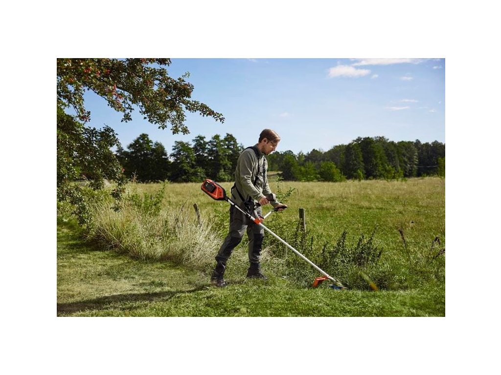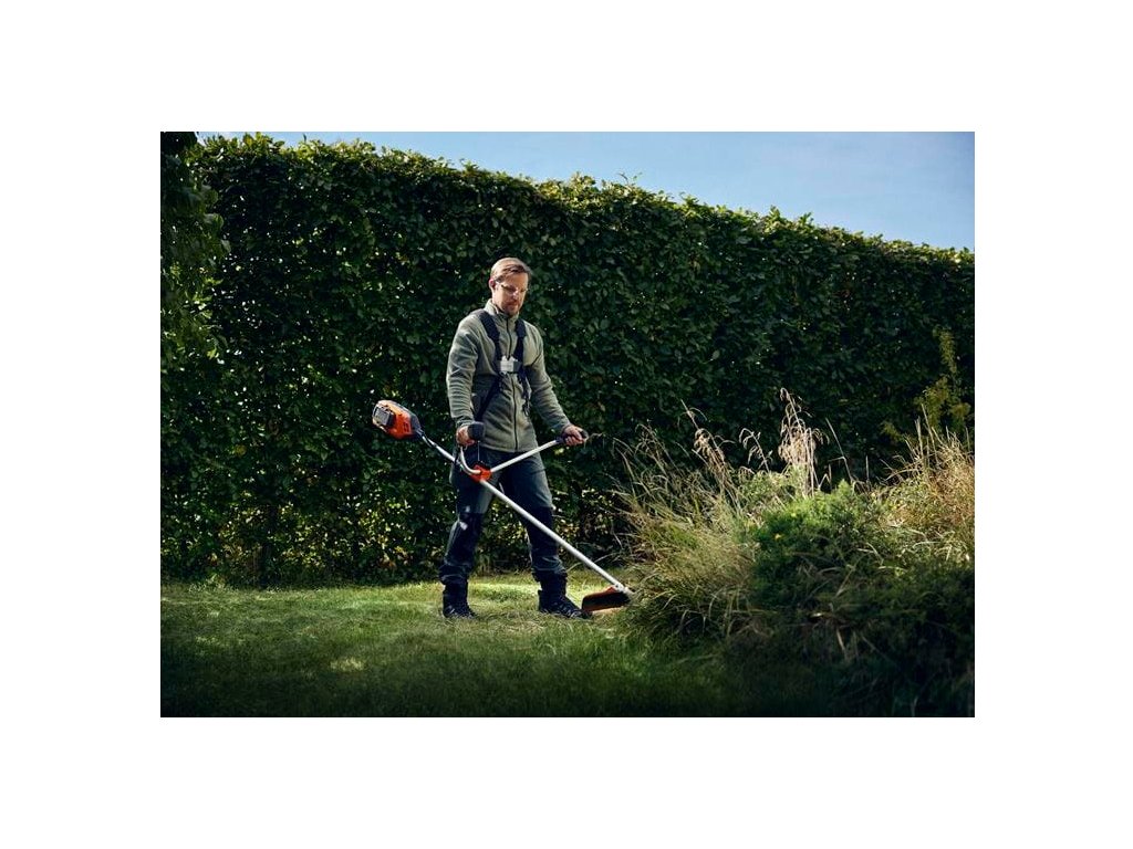 Tento křovinořez profesionální kvality a výkonu si účinně poradí s hustou trávou a lehkými křovinami, a to za každého počasí. Bezkomutátorový motor E-torq má aktivní chlazení pro maximální účinnost a je umístěn vzadu pro optimální vyvážení a ochranu motoru. Ergonomická rukojeť, digitální uživatelské rozhraní, vysoce kvalitní popruh a měkká rukojeť zvyšují komfort a pohodlí. Součástí dodávky je strunová hlava, kombinovaný kryt a kovový nůž na trávu, které zajistí pokaždé perfektní výsledky. Výrobek je součástí akumulátorového systému Husqvarna BLi-X 36V.