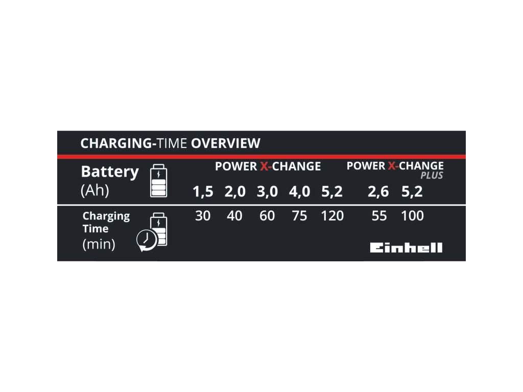 Nabíječka Einhell PXC 18 voltů / 30 minut patří do multifunkčního a vzájemně kombinovatelného systému baterií řady Power X-Change. Výhody jsou zřejmé: Jedna baterie a jedna nabíječka pro všechny přístroje nejenže značně sníží pořizovací náklady, ale také zamezí nepořádku a zmatku způsobeným nejrůznějšími bateriemi a nabíječkami pro každý přístroj zvlášť. Výkonný, vytrvalý a ekonomicky úsporný – systém baterií lze použít u všech přístrojů řady Power X-Change. Nabíječka 18 V 30 min Power X-Change je univerzálně použitelná pro všechny baterie PXC. Životnost baterií je značně prodloužena díky nabíjecím cyklům přizpůsobeným dané situaci. Neustálé monitorování baterií zajišťuje optimální proces nabíjení a zároveň zobrazuje nejaktuálnější informace o stavu baterií prostřednictvím 6 stavových indikátorů LED. Inteligentní management nabíjení zajišťuje nejvyšší úroveň bezpečnosti během nabíjení. Montáž na stěnu jde díky integrovaným závěsným okům rychle od ruky.