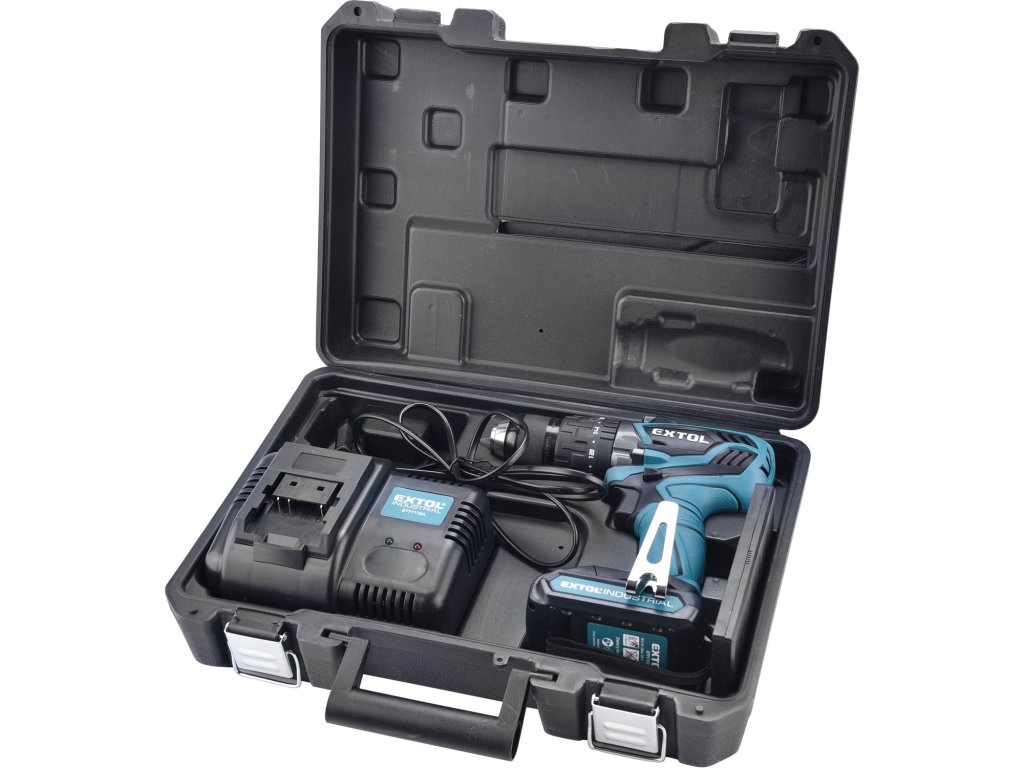 Aku šroubovák EXTOL INDUSTRIAL s příklepem, 18V Li-ion, 4 pólový motor, 2000mAh