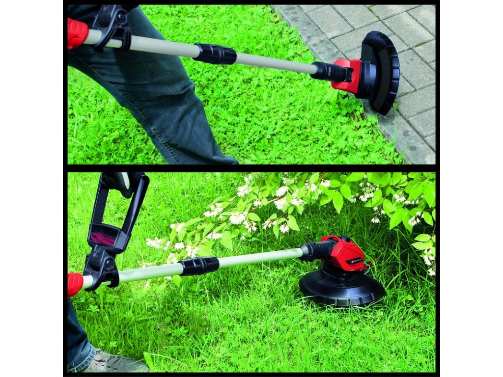 Aku vyžínač GE-CT 18 Li Solo je výkonný přístroj, který zajišťuje pěstěný trávník všude tam, kam se sekačka na trávu nedostane. Plynule posuvné teleskopické madlo vyžínače GE-CT 18 Li Solo se přizpůsobí jakékoli tělesné výšce a zajišťuje komfortní manipulaci. Díky měkkému úchopu, plynule nastavitelné druhé rukojeti s integrovanou přihrádkou pro 20 nožů (součást dodávky) a hlavě motoru, kterou lze otáčet v rozsahu +/- 90° a naklápět do 5 poloh, lze snadno a pohodlně zvládnout i obtížné situace, jako jsou svislé plochy a okraje trávníku. Pro ochranu květin, okrasných rostlin a dalších citlivých objektů je přístroj vybaven ochranou proti nechtěnému posekání květin. Dodávka neobsahuje baterii a nabíječku.