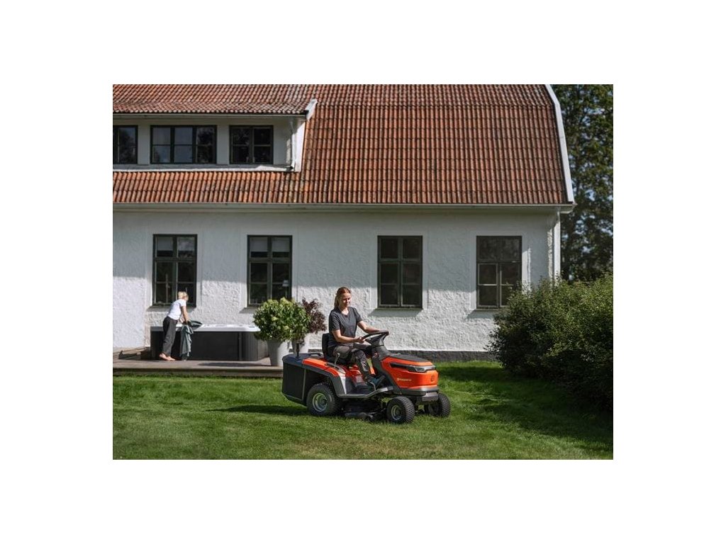 Pohodlná jízdní poloha a ovládání díky nastavitelnému sedadlu a snadno přístupným ovládacím prvkům. Snadné nastavení výšky sečení pomocí pružiny.