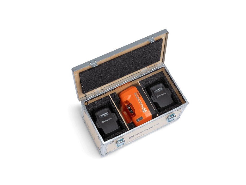 Box na 36 V akumulátory Husqvarna je dřevěný box vhodný pro přepravu akumulátorů. Vnitřní prostor je vyřešen tak, aby se dovnitř vešly dva 36V akumulátory a nabíječka. Box je certifikován pro přepravu lithium-iontových akumulátorů podle normy UN 3480. Vzhledem k tomu, že je box robustní a pevný, je ideální pro uživatele z řad profesionálů. Zařízení je během přepravy dobře chráněno a pro uživatele je výhodnější mít výrobky uskladněné a nosit je pohromadě, aby o nich měl přehled.