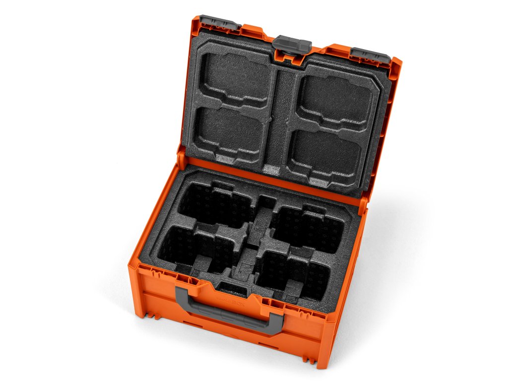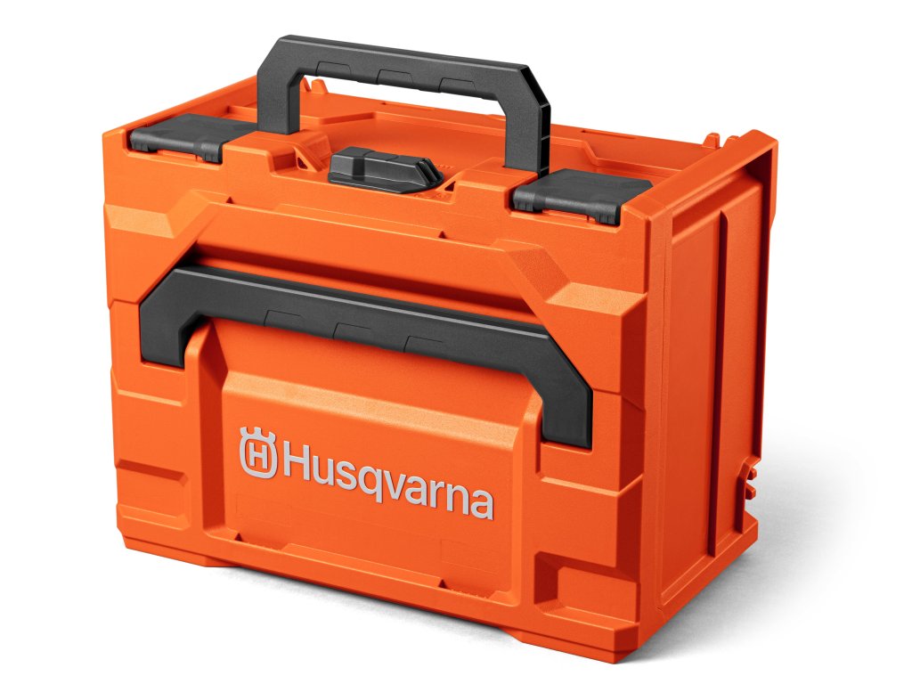 Přepravní box Husqvarna na akumulátory je robustní, ale lehký a praktický kufřík až pro 4 ks 36V akumulátorů Husqvarna, s certifikací UN3480 pro bezpečnou přepravu lithium-iontových akumulátorů. Poskytuje vynikající tepelnou izolaci a skvělé tlumení nárazů během přepravy. Ergonomické rukojeti umístěné na přední i horní straně pro snadnou manipulaci. Dobře promyšlený design umožňuje stohování více boxů a přidáním propojovací multiadaptérové desky Husqvarna (prodává se samostatně) lze boxy také připojit k systémům boxů třetích stran.