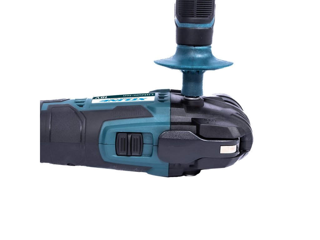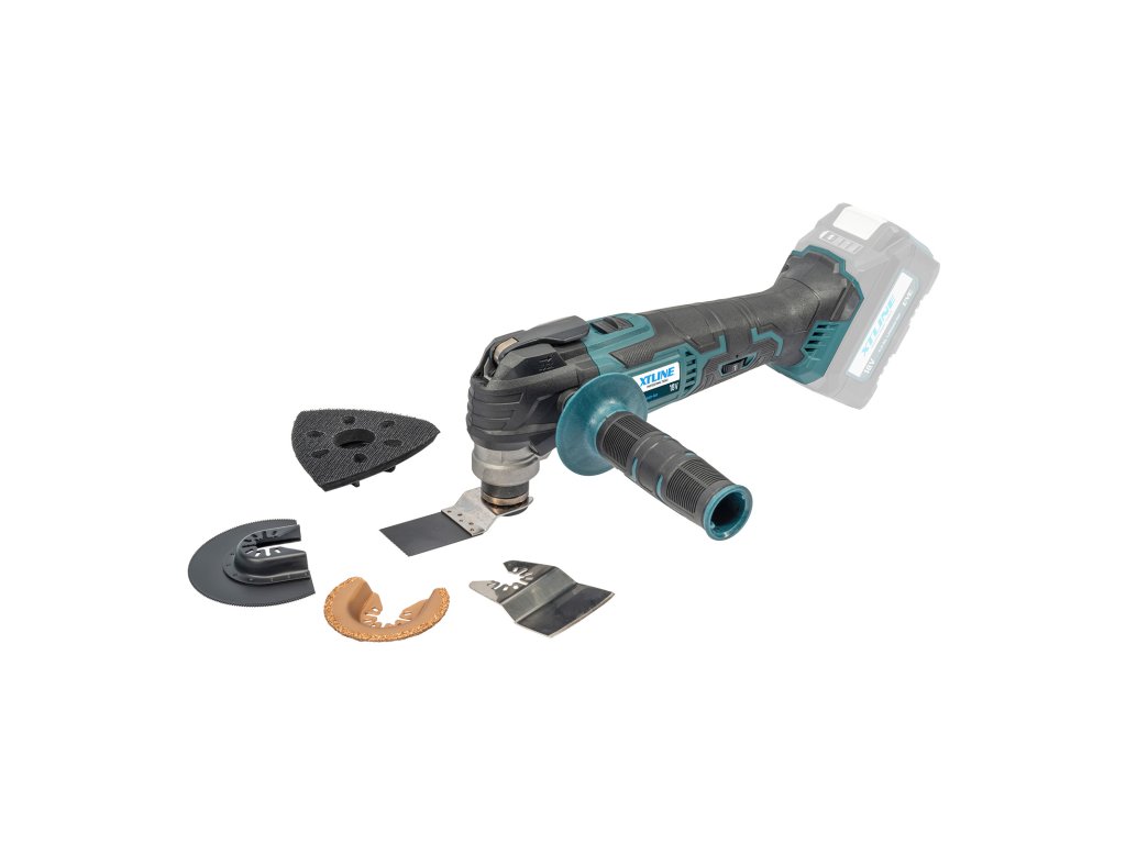 Akumulátorová multifunkční bruska, která řeže a brousí sádrokarton, kov, dřevo, plasty, kompozity a další materiály. Aretace plátku nevyžaduje žádné nářadí, magnetická spona pro rychlou a snadnou výměnu příslušenství. Má regulaci otáček, rychloupínací systém, odsávání prachu a vestavěné LED světlo, které zajišťuje dobré osvětlení a perfektní viditelnost obrobku. Bruska je bez akumulátoru a nabíječky. Nabíječku a samostatný akumulátor je možné dokoupit zvlášť.