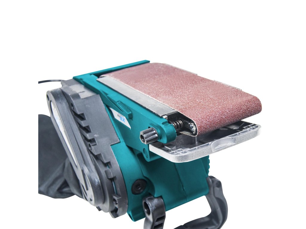 Pásová bruska slouží k broušení dřeva (trámy, latě, desky), kovu (k odstranění rzi na kovové plochy). Lze využít i k plochému broušení lakovaných, natíraných a tmelených povrchů. Výhodou je možnost vystředění brusného pásu, rychlá a snadná výměna brusného uvolněním pojistky a nastavení polohy rukojeti pomocí aretace.