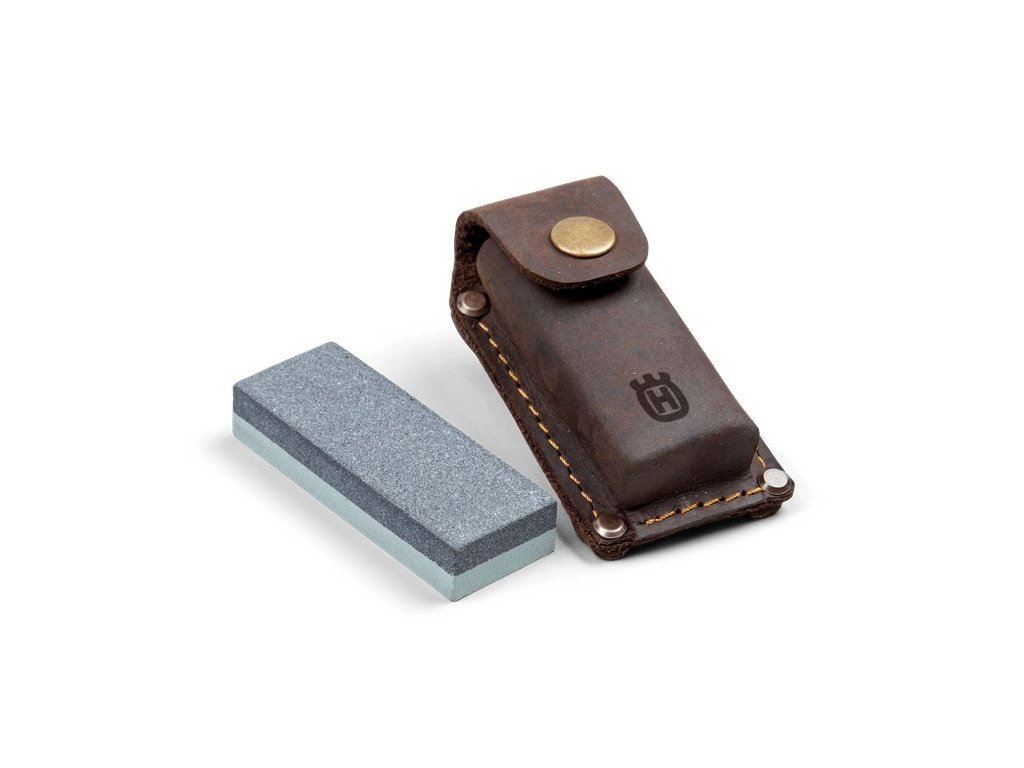 Malý brusný kámen z karbidu křemíku na ostření seker s dvojí zrnitostí (hrubá a jemná) pro rychlé nebo jemné broušení. Lze použít jak na sucho, tak s olejem nebo vodou. Dodává se s koženým pouzdrem.