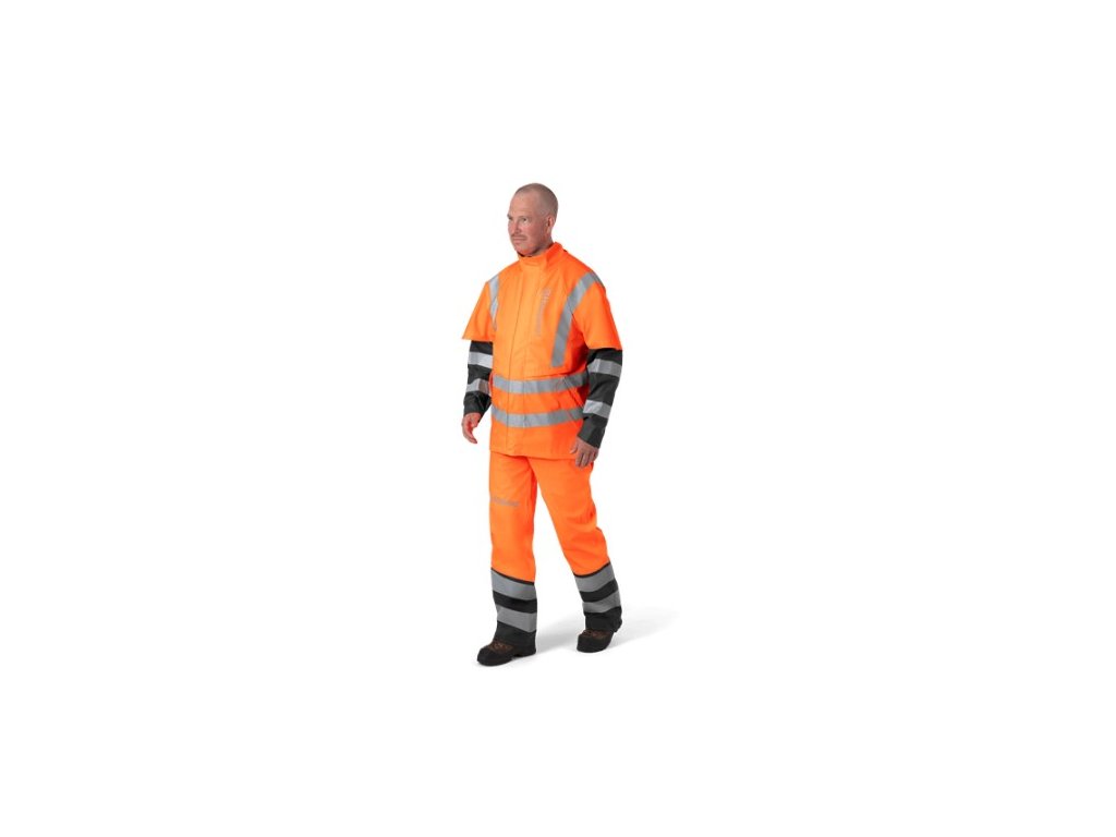 Střih bundy umožňuje lepší proudění vzduchu v bundě po dlouhou pracovní dobu v dešti. Vnitřní náprsní kapsa a skryté kapsy na přední straně jsou ušity tak, aby zabránily vniknutí vody, a vaše věci tak byly v bezpečí. Schváleno podle EN ISO 20471 třída 3 a EN343. Velikost XS-XL.