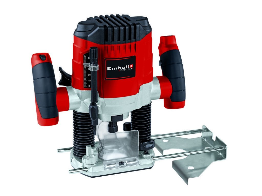 Horní frézka TC-RO 1155 E je šikovný, výkonný nástroj, který se stane nepostradatelným pomocníkem ambiciózního domácího kutila při celé řadě prací spojených s frézováním. Hloubku frézování lze rychle předvolit vícestupňovým revolverovým dorazem a přesně nastavit pomocí jemného nastavení. Dodatečnou ochranu zajišťuje kryt proti třískám. Díky elektronické regulaci otáček lze funkci horní frézky optimálně přizpůsobit požadavkům materiálu a frézy. Aretace vřetena umožňuje rychlou a snadnou výměnu nástroje, zatímco dobře vyvážená konstrukce zajišťuje stabilitu přístroje. Kleština umožňuje použití nástrojů s průměrem stopky od 6 mm nebo 8 mm. Odsávání prachu přes adaptér zajišťuje pořádek a čistotu. Rozsáhlé příslušenství horní frézky TC-RO 1155 E zahrnuje také paralelní doraz, kružítkový hrot, kopírovací pouzdro a odpovídající nářadí pro výměnu frézy.