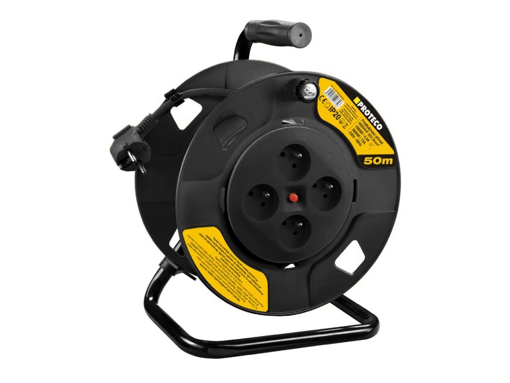 Prodlužovací kabel 50 m na cívce o průřezu vodičů 1,5 mm² je určen pro vnitřní použití. 4-zásuvka a tepelná pojistka proti přetížení jsou integrovány v navíjecí cívce. Na prodlužovací kabel lze při plném rozvinutí připojit spotřebič o příkonu až 3 kW. Po navinutí kabelu je cívka velmi dobře skladovatelná.