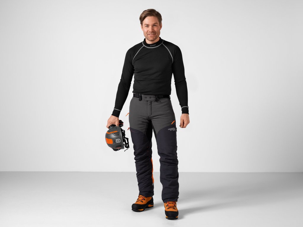 Tech-Climb je inovativní řešení Husqvarny pro stromolezce, které nabízí optimalizovanou ochranu kolem nohou při používání horolezeckého vybavení. Při nošení horolezeckého postroje a ostruh se mohou vrstvy protipořezového ochranného materiálu na nohou stlačit, což znesnadní narovnání ochranného materiálu do původní tloušťky, potřebné pro snížení rychlosti řetězu, jak bylo zamýšleno. Bezpečnostní řešení Tech-Climb je šité na míru pro snížení tohoto rizika a je navrženo tak, aby se látka snáze narovnala.