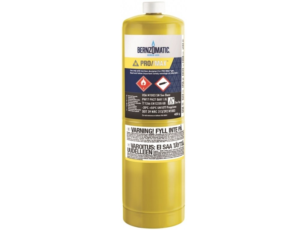 Plyn propylen PRO-MAX™ Bernzomatic® 400g (14,1 oz. - 1 l), láhev CGA 600 s vnějším závitem 1"- UNEF 20 RH.