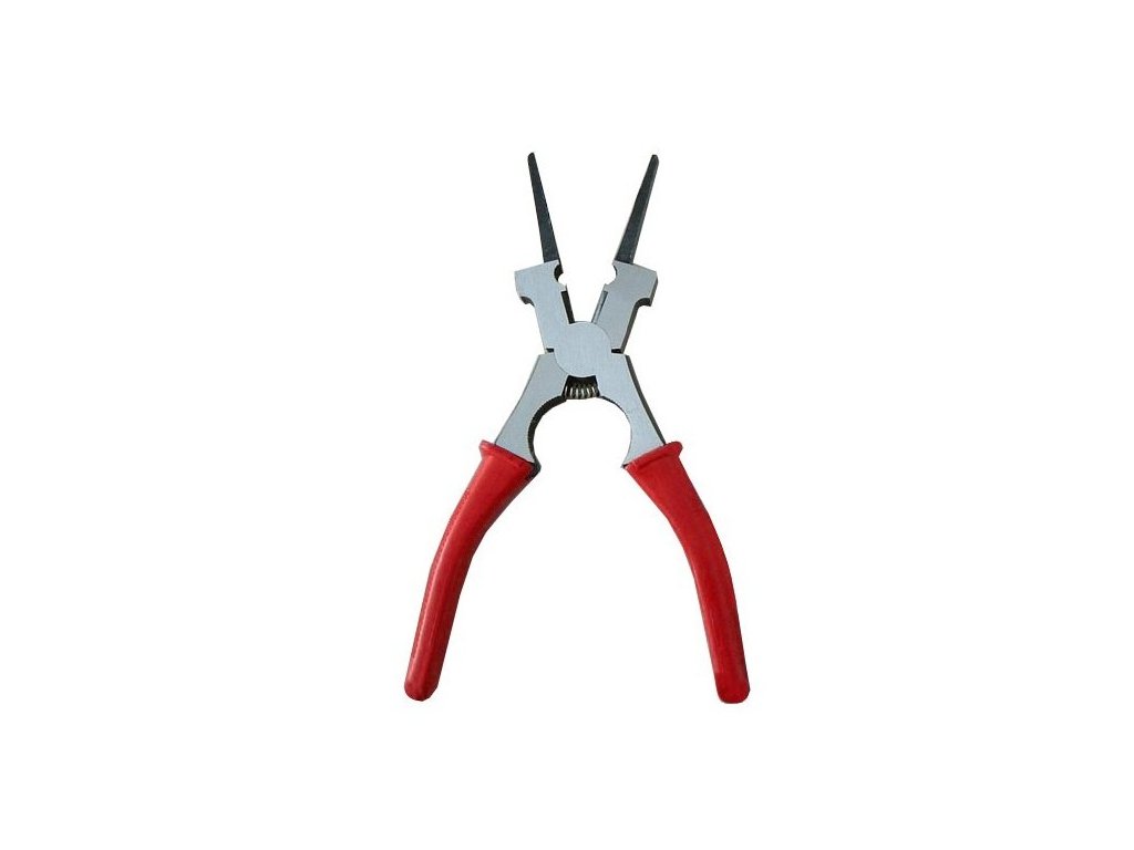 Víceúčelová pomůcka pro MIG svařování – čištění hubice od nečistot, vytažení a stříhání drátu, povolení/utažení špičky a hubice hořáku, kladívko.