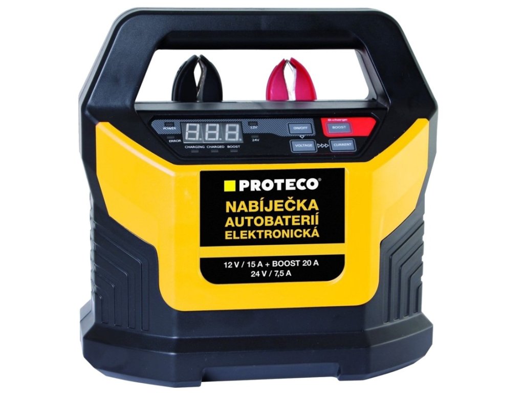 Nabíječka autobaterií s napájením 230 V spolehlivě nabijí 12 a 24 V akumulátory je proto vhodná do každé garáže nebo dílny. Nabíječka je vybavena ochranou proti přepólování, zkratu, přehřátí a přetížení, dále je vybavena funkcí DESULFATACE (odstranění síranu), která je spouštěna automaticky po vyhodnocení stavu akumulátoru a dokáže mu prodloužit životnost akumulátoru. Další funkcí kterou je nabíječka vybavena je funkce BOOST, která slouží k intenzivnímu krátkodobému dobijení vybitého akumulátoru po zapnutí této funkce běží odpočet 5 minut. Každý nabíjecí cyklus probíhá v osmi automaticky řízených krocích, od diagnostiky akumulátoru až po ukončení nabíjení a přepnutí do udržovacího režimu. Nabíjecí režim je zobrazen na displeji. Po vypnutí nabíječky zůstává automaticky uložen poslední nabíjecí režim.