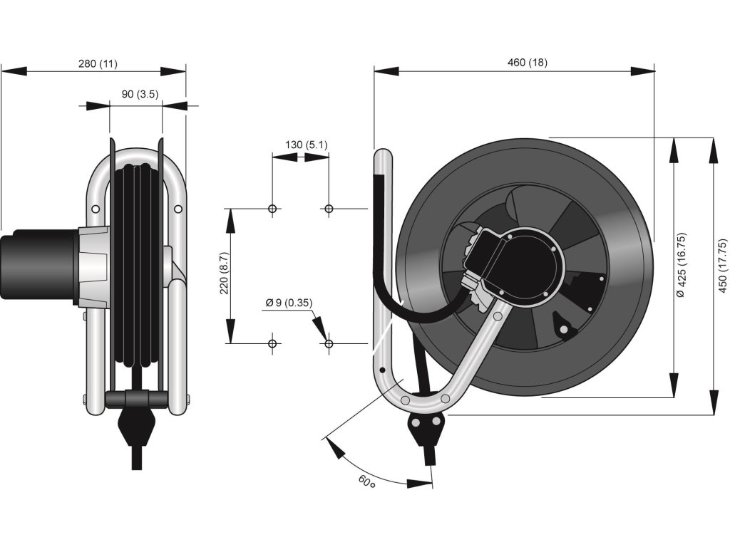 Kabelový naviják pro těžké průmyslové podmínky. Naviják se dodává v jednofázovém nebo třífázovém provedení a má integrovanou tepelnou pojistku proti přetížení. Kabelový naviják 793 má kapacitu 25 m kabelu a je vyroben z odolných kompozitních materiálů a galvanizované oceli.
