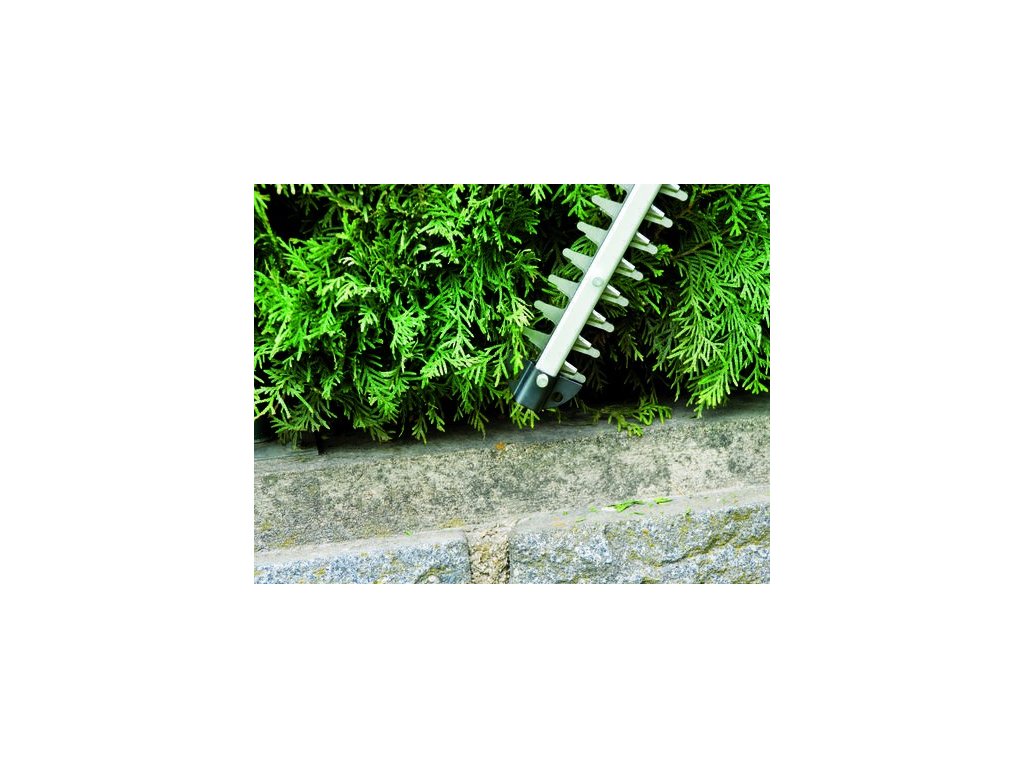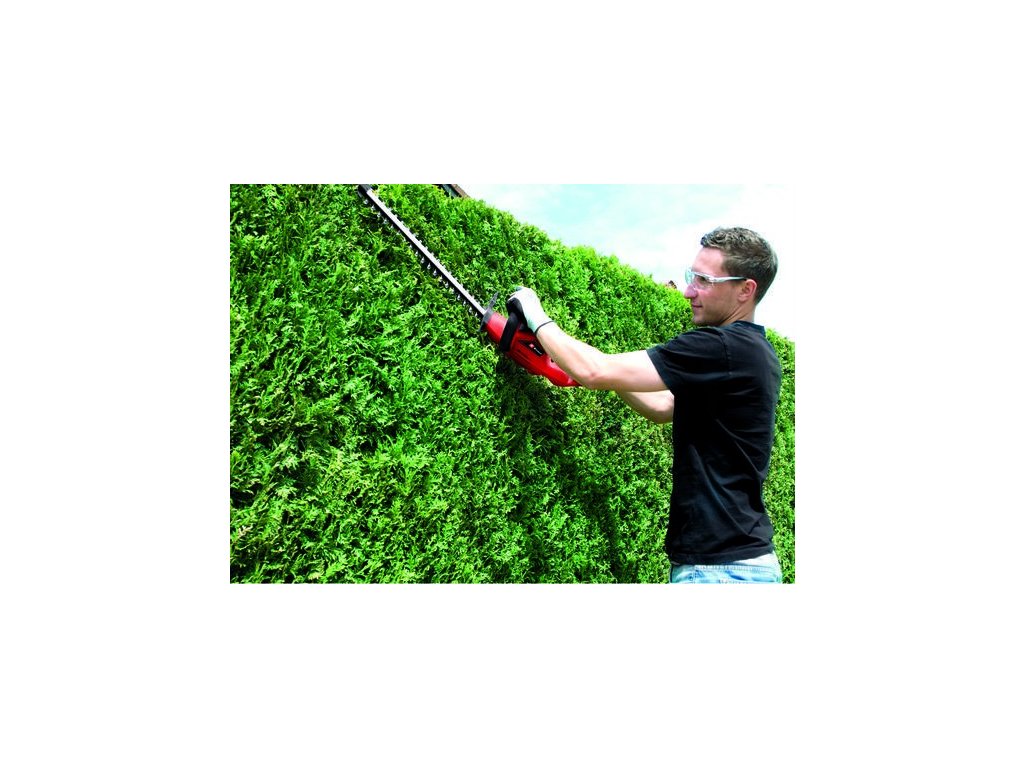 Elektrické nůžky na živý plot GH-EH 4245 jsou praktický a spolehlivý přístroj, který se osvědčí jako nepostradatelný pomocník při péči o živé ploty, keře a křoviny. Jejich protiběžné, oboustranně stříhací bezpečnostní nože z laserem řezané a diamantem broušené oceli poskytují vynikající výsledky stříhání. Účinný přenos energie zajišťuje robustní kovová převodovka s dlouhou životností. Díky přídavné rukojeti a nízké hmotnosti lze nůžky na živý plot snadno vést. Obouruční bezpečnostní spínač a velkoplošný ochranný kryt rukou nůžek na živý plot GH-EH 4245 zajišťují vysokou úroveň bezpečnosti při práci. Nože jsou chráněny hliníkovým krytem čepele. Přídavná rukojeť nabízí vysokou ergonomii pro pohodlné vedení. Přívodní kabel je chráněn proti poškození držákem kabelu pro odlehčení tahu. Elektrické nůžky na živý plot lze bezpečně přepravovat v odolném pouzdře.