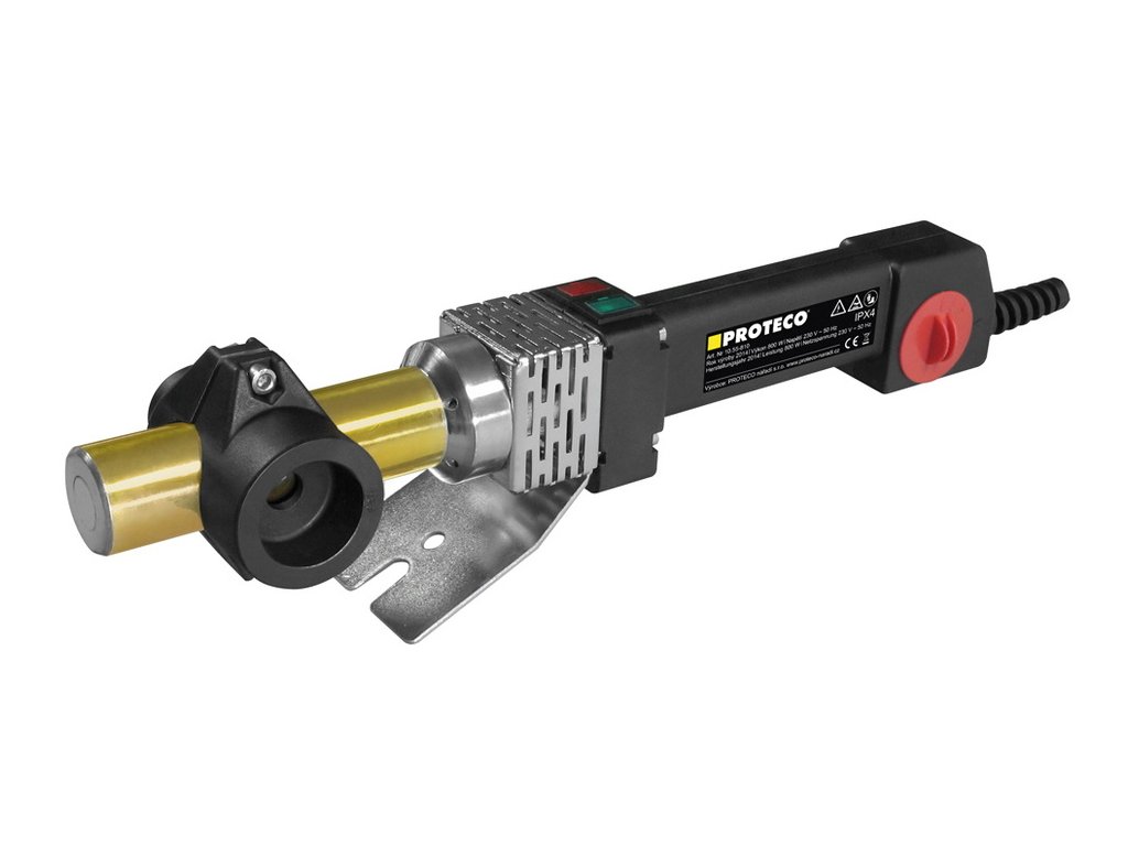 Jedná se o trnový model o výkonu 800W s plynulou regulací teploty od 0 do 300°C, která umožňuje nastavit vhodnou tavící teploty dle druhů a průměrů svařovaných trubek. Díky indikátorům na těle polyfůzní svářečky trubek PROTECO lze ihned rozpoznat, zda-li je polyfůzní svářečka 800W připojena k síti a zda-li je nahřáta na požadovanou teplotu. Nástavce, neboli svařovací matrice (20, 25 a 32mm) jsou potaženy teflonovým antiadhézním materiálem, který zvyšuje jejich odolnost a zároveň rychlost při svařování. Polyfůzní svářečka 800W je dodávána s příslušenstvím v kompaktním plastovém kufru, chránící ji před případným mechanickým poškozením.