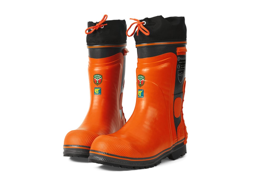 Ručně vyráběná obuv se schválenou ochranou proti proříznutí. Obzvláště zesílený svršek, ocelová špička boty a zesílené okolí podešve. Tvar podpatku usnadňuje obouvání a vyzouvání boty. Bavlněná podšívka. Podrážka je přizpůsobená pro hroty.