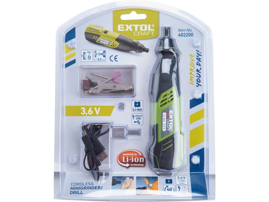 Přímá bruska EXTOL aku 3,6V Li-ion 1300mAh USB nabíjení