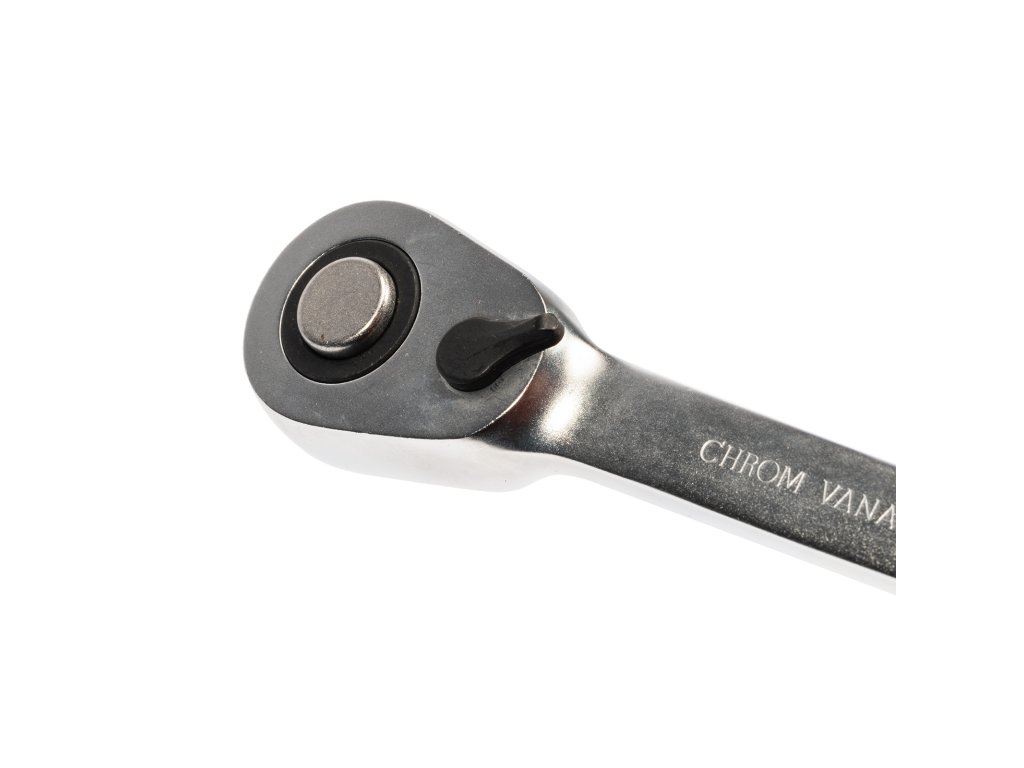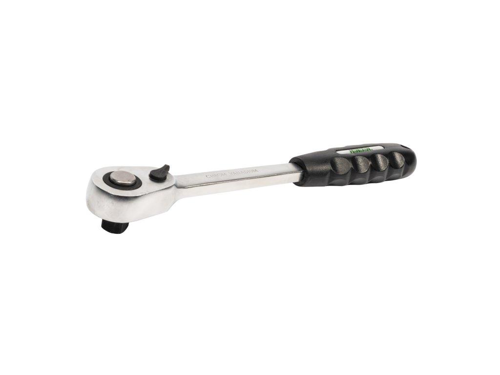 Pogumovaná, protiskluzová rukojeť. Chromový povrch odolný proti korozi. Aretace čtyřhranu zabraňuje samovolnému uvolnění hlavice.