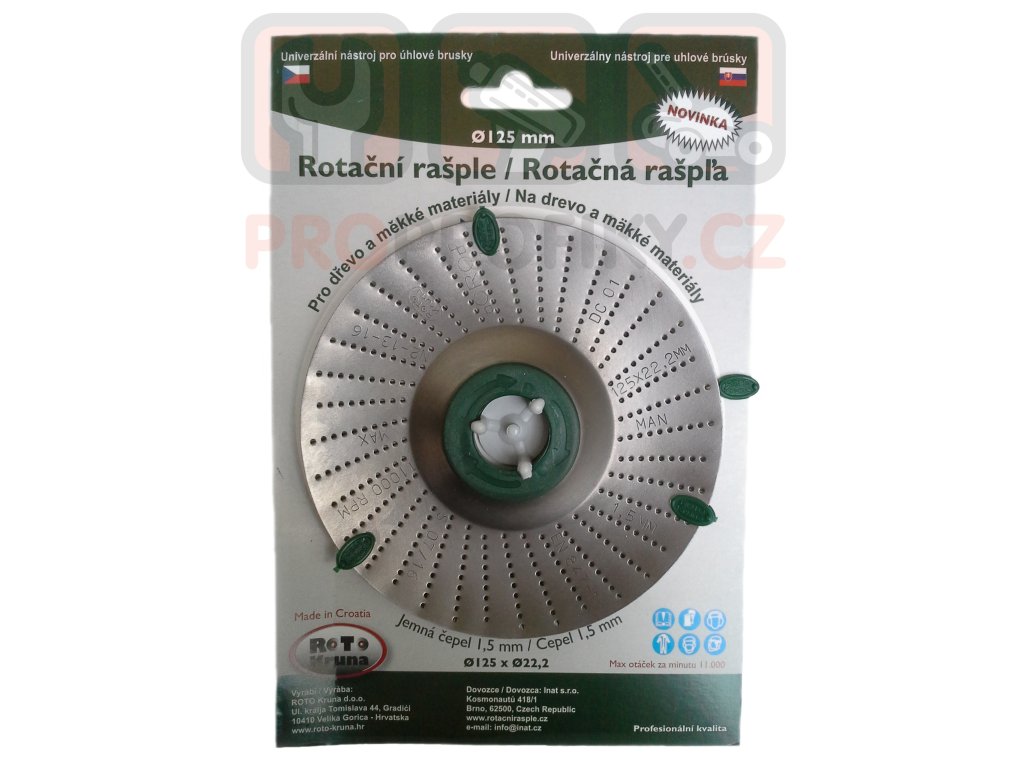 Rašple rotační 125x22,2 mm jemná čepel 2,0mm