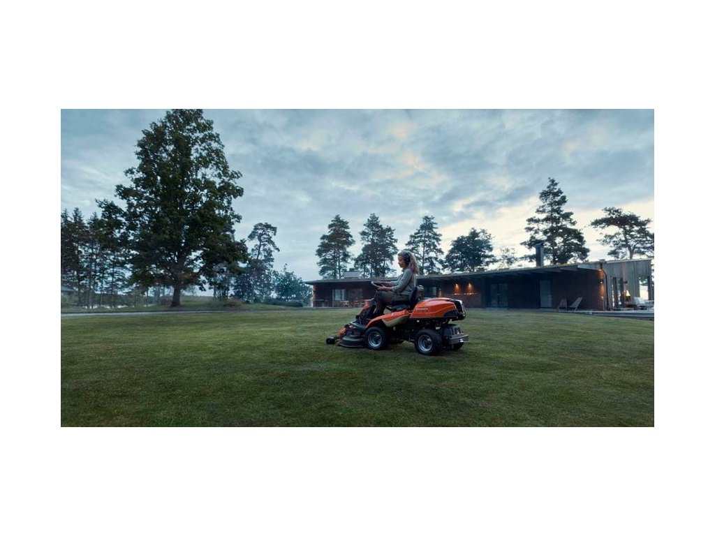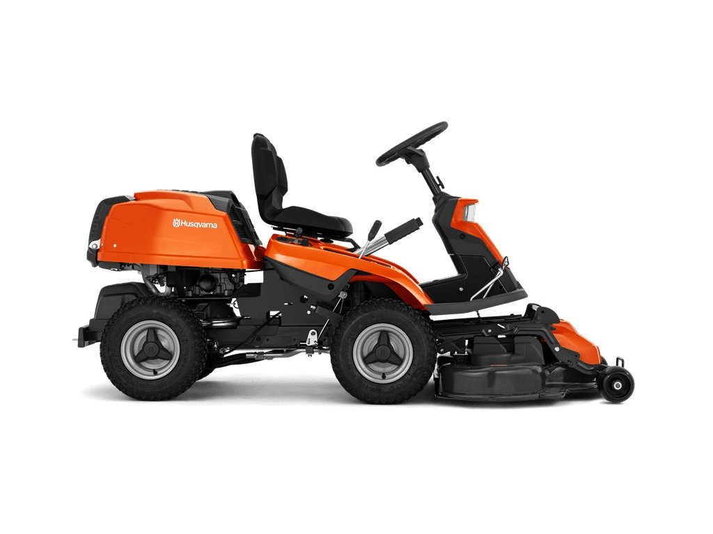 Motor umístěný vzadu zajišťuje lepší přehled při sečení a generuje menší hlučnost a emise v prostoru řidiče oproti riderům s motorem umístěným vpředu.