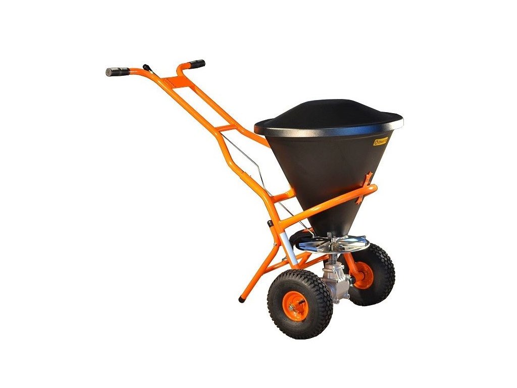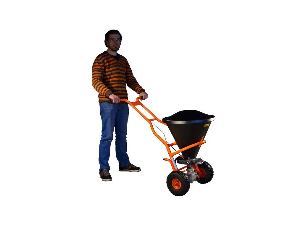Profi provedení zvládne na jeden plný zásobník ošetřit až 1.000 m² při šíři posypu až 4,5 metru. Kapacita zásobníku je rovných 40 kg, což dělá ze stroje výkonného pomocníka pro údržbu cest nebo ploch ve středně velkých firmách nebo parkovišť u obchodních domů. Pohon sypání je řešen od kol šnekovou převodovkou v olejové lázni.