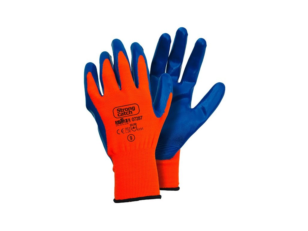 Rukavice je díky použitému materiálu nylon pružná, barvená výstražnou oranžovou barvou.