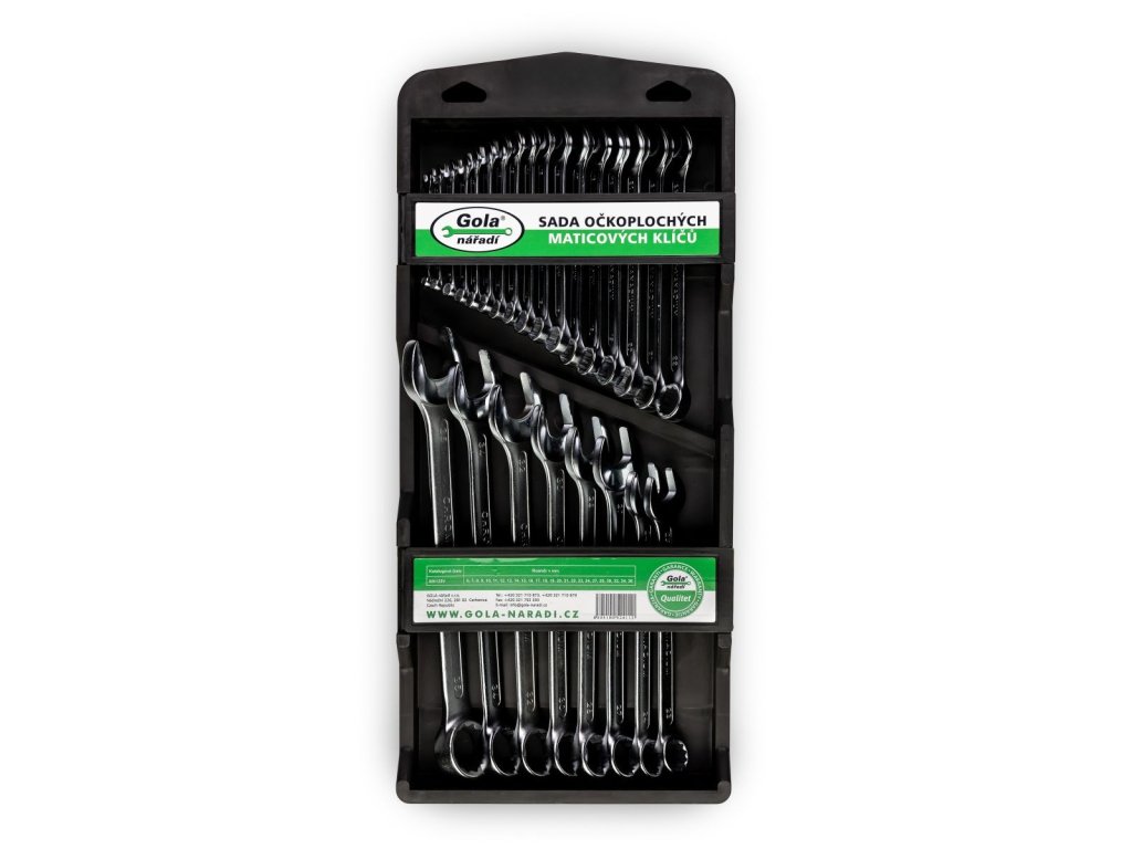 Pečlivě sestavená GOLA sada očkoplochých maticových klíčů, 25 dílů, 6-36 mm, plastový vertikální držák, DIN 3113.