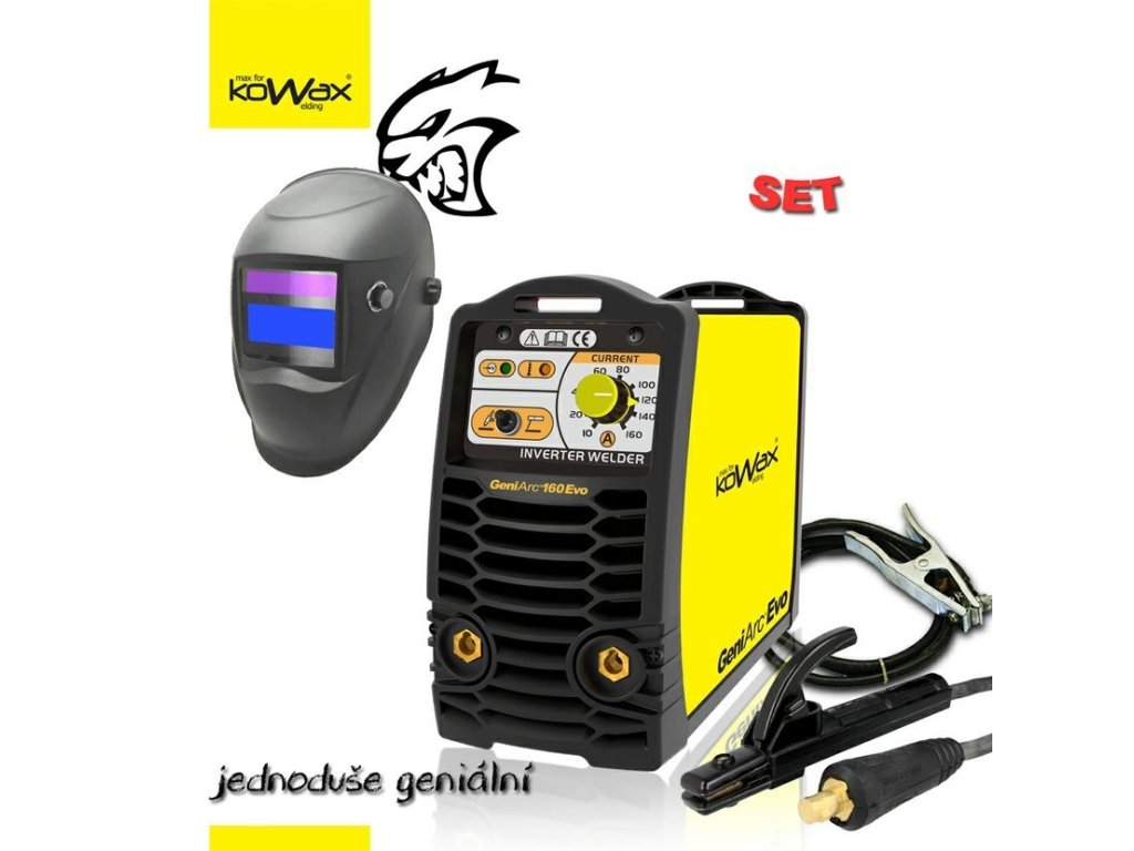 SET KOWAX® GeniArc®160 EVO Svař. invertor MMA/TIG vč.3m kabelů, svorky, a drž.el.+ samostmívací kukla