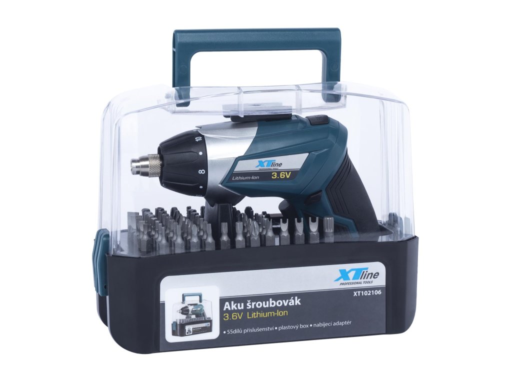 Šroubovák aku XTline 3,6 V + příslušenství 55 dílů