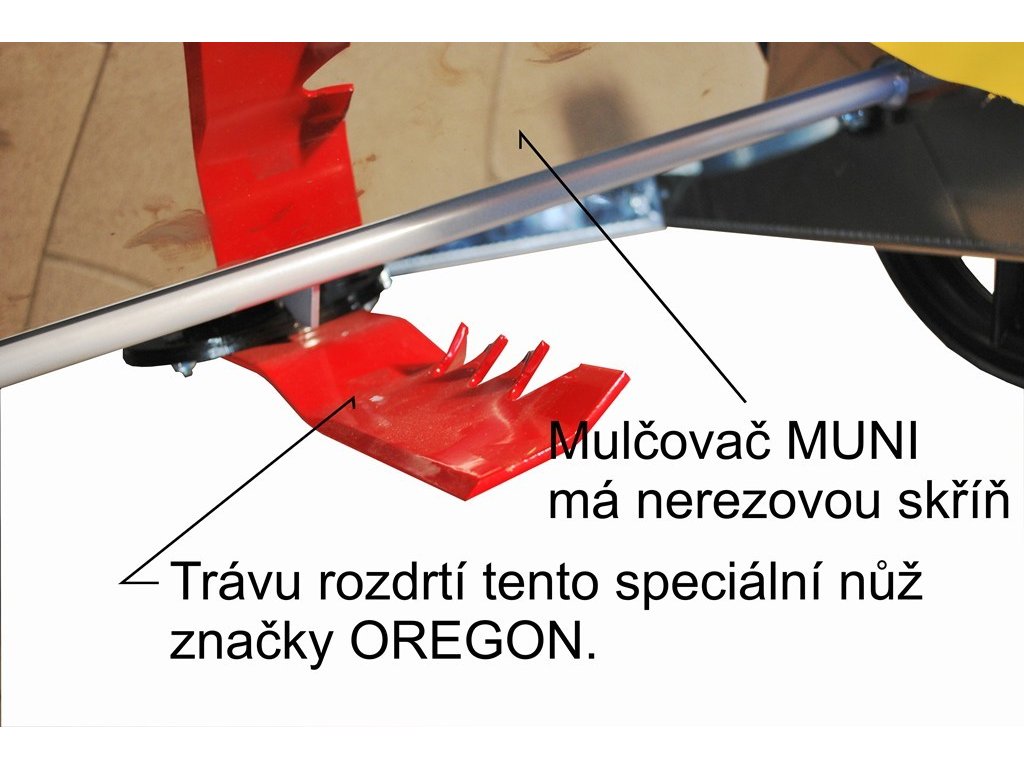 | Žací ústrojí: | nerezový plášť mulčovače se speciálním nožem OREGON |