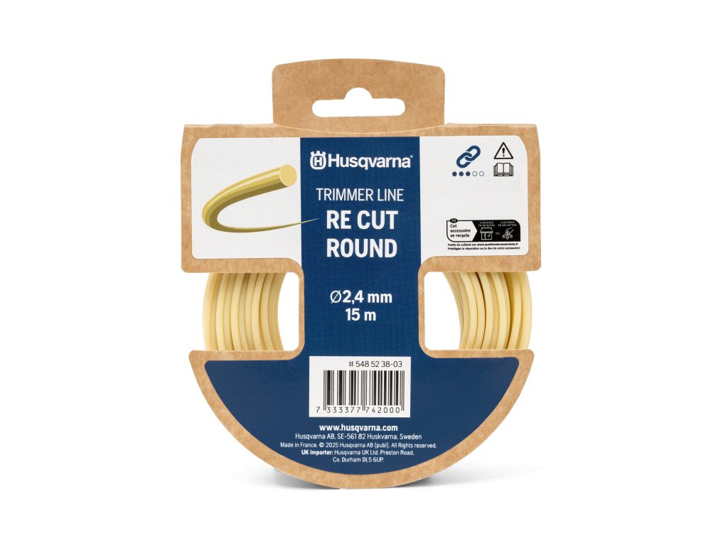 Vyžínací struna Husqvarna RE Cut vyrobená z materiálu Ultramid® B lowPCF*. Poskytuje stejnou odolnost a žací výkon jako tradiční struny a díky kulatému tvaru také snadnou manipulaci. Vhodná do všech standardních strunových hlav.