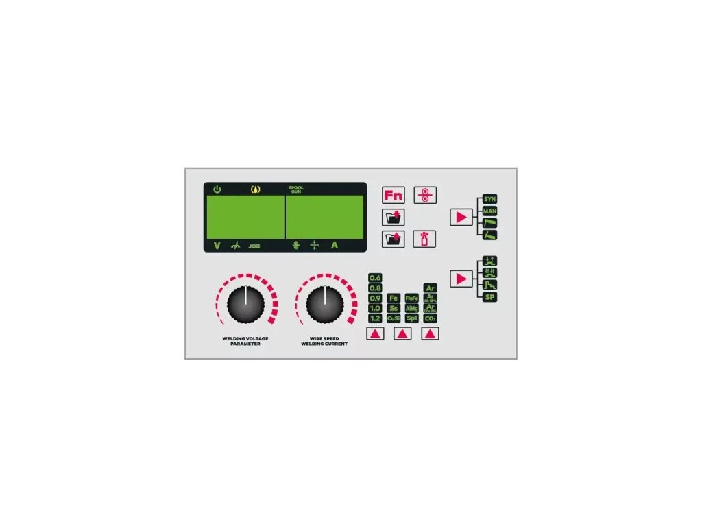 Stroj je vybaven synergickým programem pro ocelové, hliníkové, nerezové a CuSi materiály, který zajišťuje jednoduché a intuitivní ovládání. Uživatel nastaví průměr drátu, druh plynu, svařovaný materiál a stroj zajistí optimální nastavení ostatních parametrů.