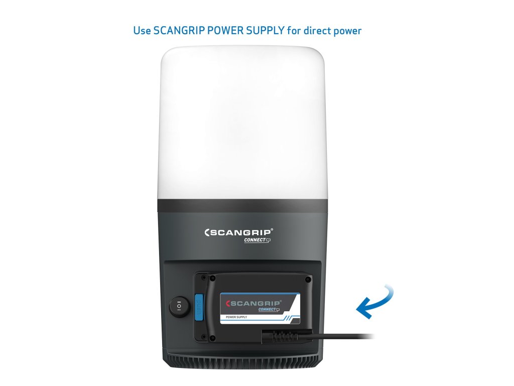 AREA 6 CONNECT je bateriově napájené pracovní světlo kompatibilní s METABO / CAS bateriovým systémem 18 V a všemi ostatními 18 V/20 V bateriovými sadami předních značek elektrického nářadí pomocí SCANGRIP CONNECTOR. Kromě toho lze SCANGRIP POWER SUPPLY použít pro přímé napájení poskytující neomezenou dostupnost světla.