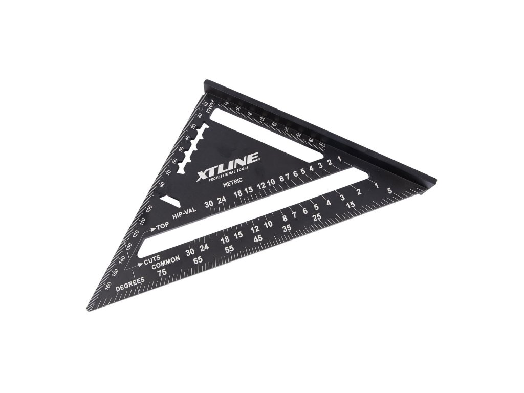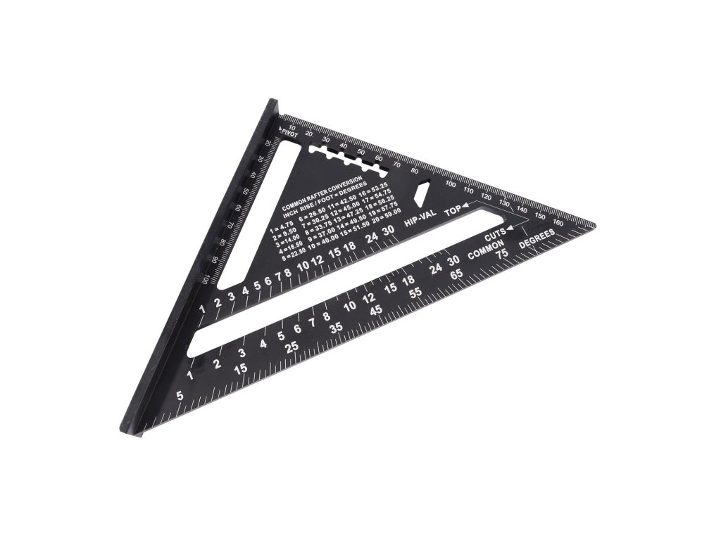 Tesařský úhelník, známý též jako „speed square“, je multifunkční pomůckou pro mnoho řemesel. Kvalitní slitina hliníku a přesně frézované hrany zajišťují maximální přesnost a odolnost. Úhelník umožňuje rychle a přesně vytyčit úhly 90° a 45°. Díky robustní konstrukci jej lze použít jako praktické vodítko pro kotoučovou pilu při řezání příčných i šikmých řezů. Víceúčelovost úhelníku spočívá také v tom, že můžete využít vnitřních zářezů na stupnici pro tužku nebo rýsovací nůž a použít tak úhelník jako rejsek. Další vlastností je úhloměr pro určení nebo vytyčení běžně používaných úhlů. Nechybí stupnice pro vyměření běžných, nárožních a úžlabních krokví pro tesaře. Úhelník by díky své všestrannosti a praktičnosti neměl chybět ve výbavě žádného kutila ani řemeslníka.