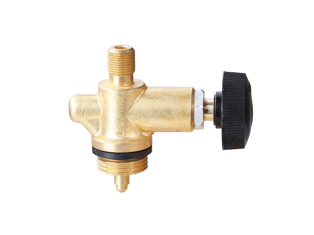 MEVA - jednocestný ventil PB se závitem M9x0,75. Pro připojení na tlakovou lahev 2 kg s výstupním závitem M9 x 0,75 s vstupním 3/8".