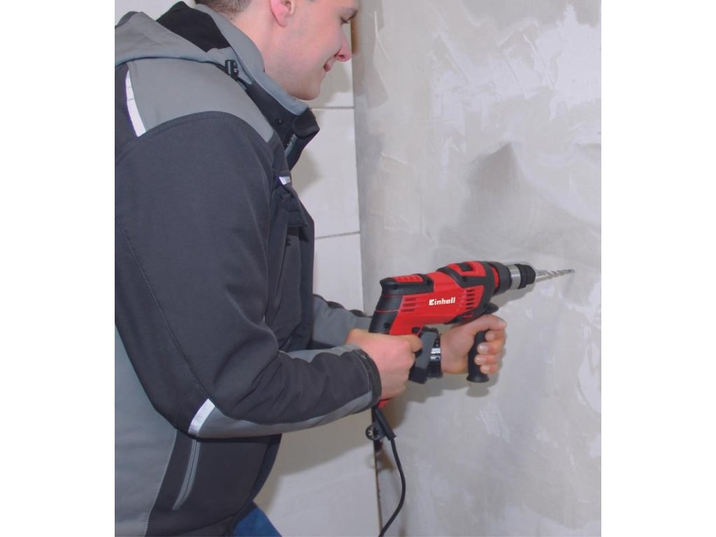 Sada Einhell TC-ID 1000 obsahuje výkonnou příklepovou vrtačku pro vrtání a vrtání s příklepem, navíc také 15dílnou sadu vrtáků do kamene, dřeva a kovu. Plynule nastavitelný doraz hloubky vrtání z masivního kovu zajišťuje přesné vrtání i při vytrvalém odporu. Přídavná rukojeť, bezpečně zafixovaná díky žebrování, poskytuje optimální úchop, a zajišťuje tak, aby vrtání bylo neustále pod kontrolou. Velký, ergonomický měkký úchop zajišťuje pohodlné držení při práci s příklepovou vrtačkou. Flexibilní vrtání umožňuje vysoce kvalitní rychloupínací sklíčidlo pro běžné vrtací nástroje až do 13 mm. Různé materiály vyžadují v závislosti na svých individuálních vlastnostech přesně danou intenzitu výkonu. Elektronická regulace otáček a předvolba otáček současně poskytují domácímu kutilovi podporu, aby mohl k různým projektům přistoupit vždy s optimálním výkonem. Vrtačka TC-ID 1000 je vhodná pro upevnění do stojanu pro vrtačky s 43 mm upínacím zařízením. Součástí 15dílné sady vrtáků jsou: Vrtáky do kamene o průměru 4 mm, 5 mm, 6 mm, 8 mm a 10 mm; vrtáky do dřeva 4 mm, 5 mm, 6 mm, 8 mm a 10 mm; vrtáky do kovu o průměru 2 mm, 3 mm, 4 mm, 5 mm, 6 mm; Sada obsahuje i kufřík, do kterého lze 15dílnou sadu přehledně uložit. Vrtáky lze elegantně a snadno vyjmout díky samostatně otevíracímu okénku integrovaném na kufříku.