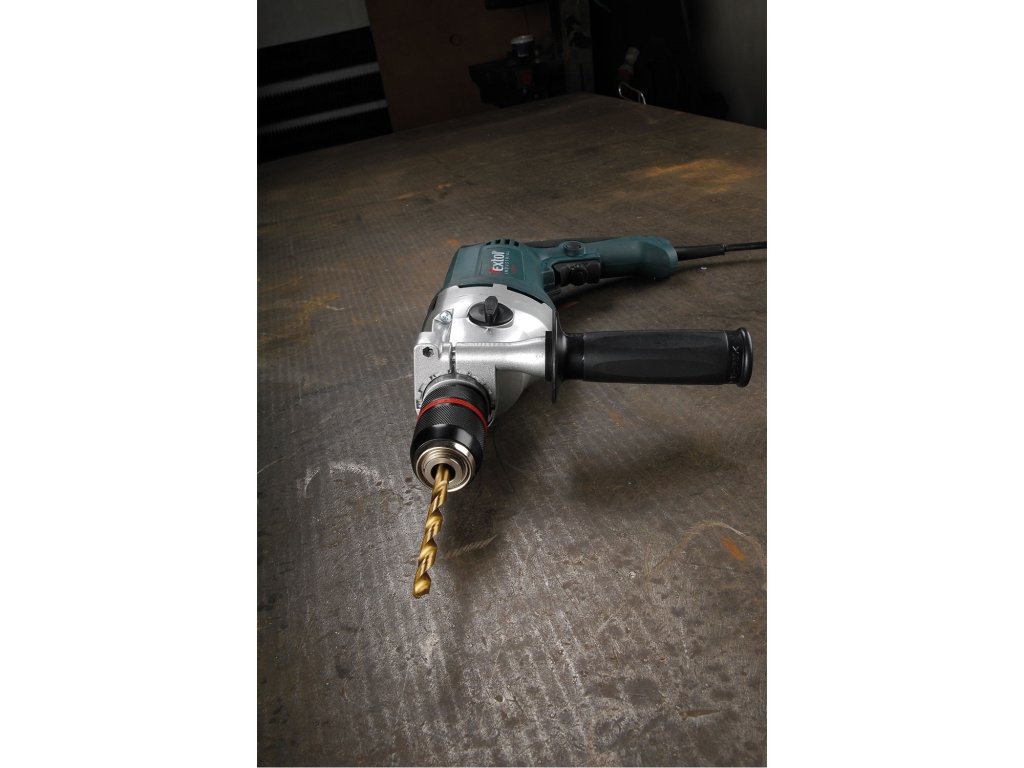 Velmi výkonná dvourychlostní příklepová vrtačka s velmi kvalitními ložisky a převody pro profesionální použití a dlouhodobou zátěž.