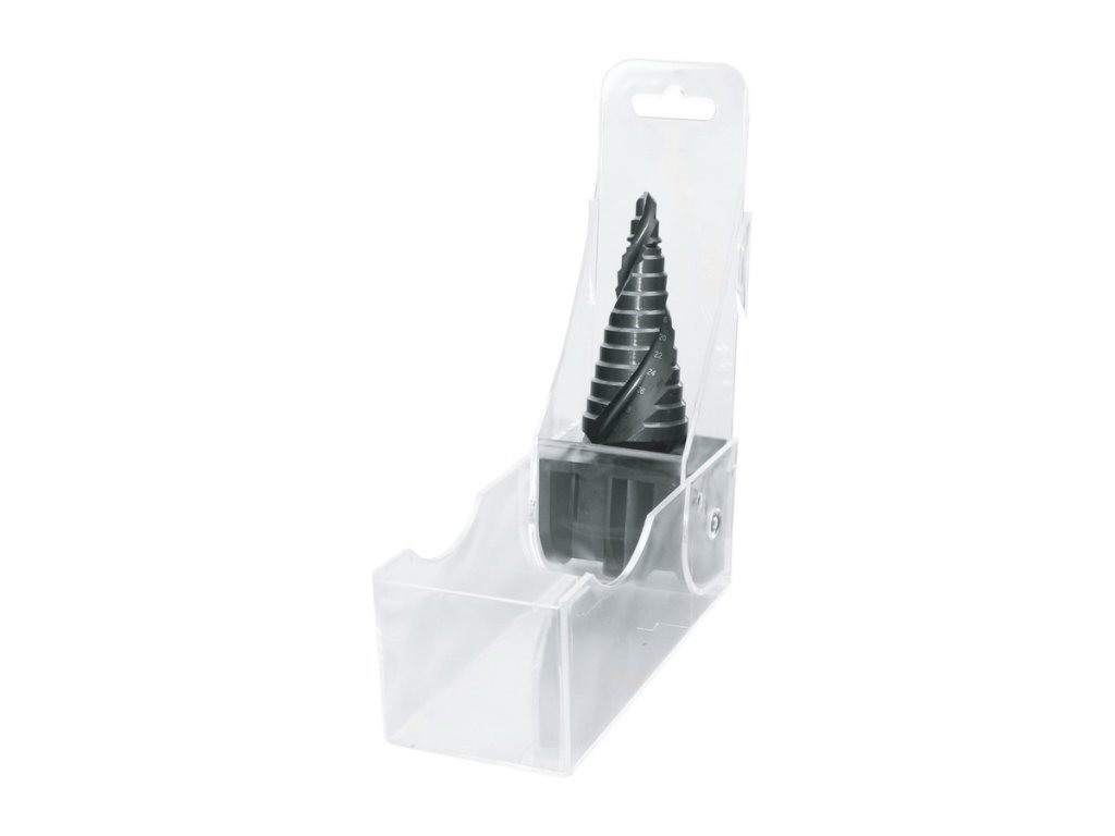 Stupňovitý vrták HSS TiAlN má spirálovou drážku a lamač třísek pro odjehlení vyvrtané díry. Stupňovitý vrták TiAlN je vyroben z kvalitní rychlořezné oceli a je povlakován titan-aluminum-nitridem, který zvyšuje tvrdost a odolnost povrchu. Systém upínání ProGrip odstraňuje možnost nežádoucího protočení upínací stopky ve sklíčidle. Pro zachování dlouhé životnosti stupňovitého vrtáku je důležité dodržovat řeznou rychlost podle jednotlivých průměrů stupňů vrtáku. Pro mazání je vhodné používat řezný olej ve spreji.