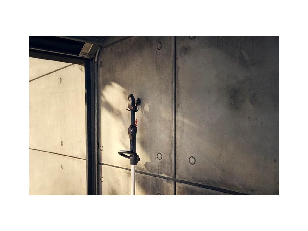 Vlastní úložný hák a kompaktní konstrukce zajišťují snadné uskladnění. Nářadí Aspire™ nemusí být tak objemné díky nastavitelným, skládacím nebo odnímatelným dílům, které usnadňují skladování i přepravu ve stísněných prostorách, jako jsou malé kůlny nebo auta. Pomocí háku, který je součástí každého balení, si můžete vybrat, zda nářadí chcete uložit přímo na zeď nebo zavěsit na naši nástěnnou úložnou kolejnici, která je součástí úložného systému Husqvarna Aspire™. Nástěnná úložná kolejnice se prodává samostatně.
