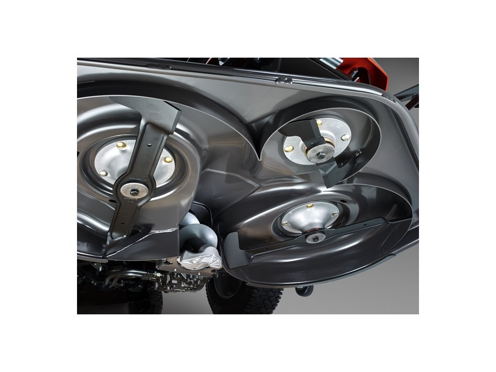 Vysoce výkonné žací ústrojí Combi 112 cm / 44". Inovativní technické řešení společnosti Husqvarna, které nabízí dvě metody sečení - mulčování a zadní výhoz posečené trávy na plochu - v jednom žacím ústrojí. Velmi odolná konstrukce žacího ústrojí, vylisováno z jednoho kusu ocelového plechu.