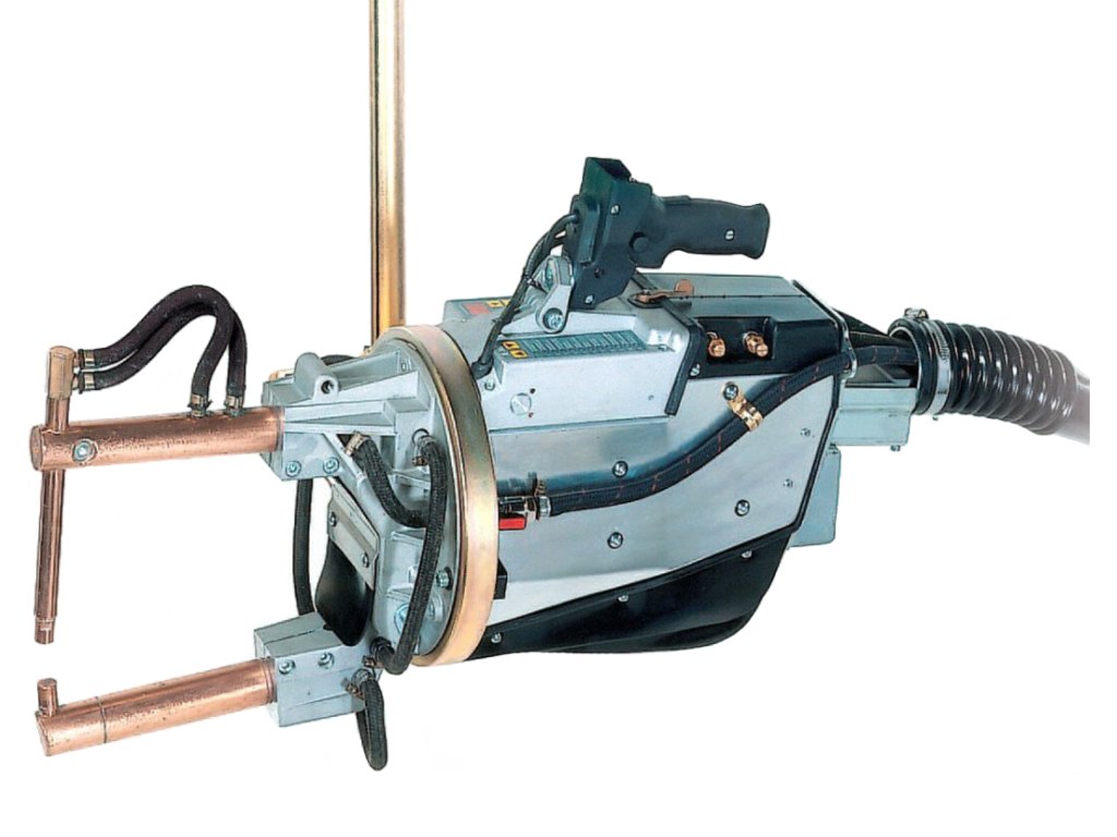 - Pneumaticky ovládaná závěsná pistole s integrovanou řídicí jednotkou svařování mikroprocesorem TE300, TE470 nebo TE480 (dle typu).