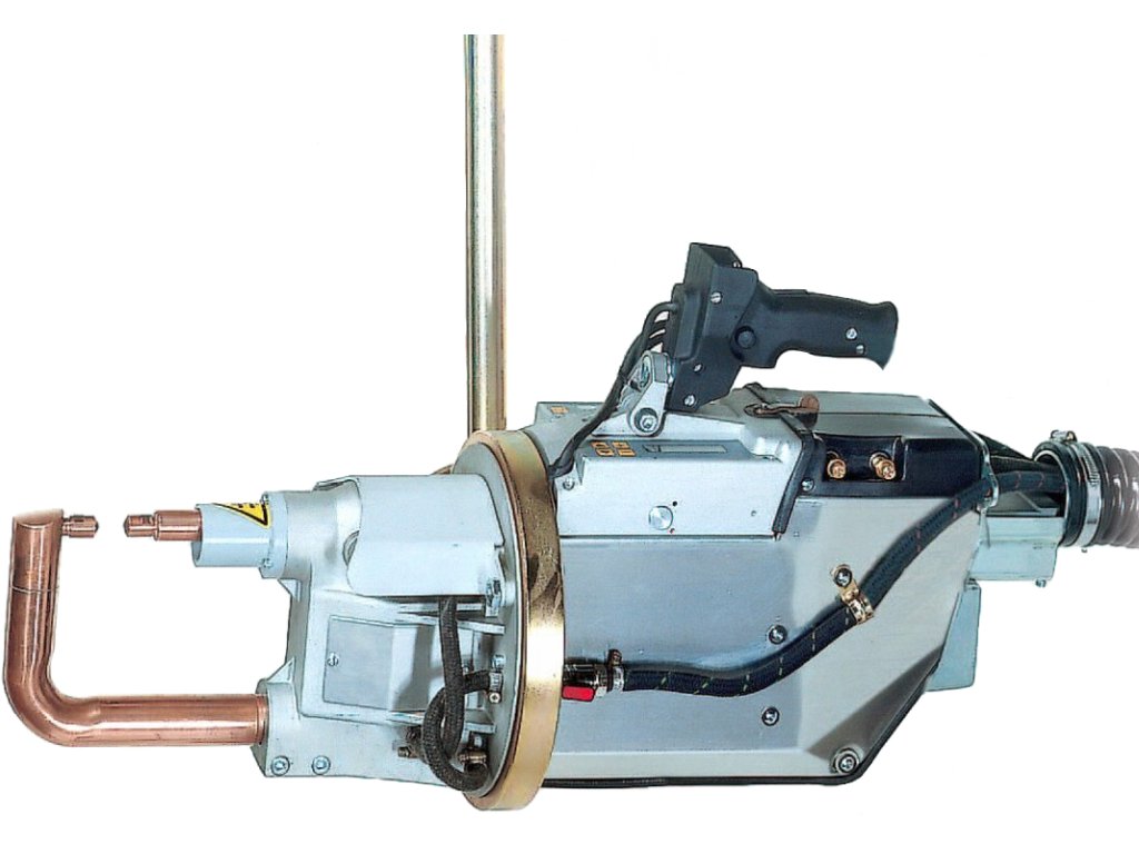 - Pneumaticky ovládaná závěsná pistole s integrovanou řídicí jednotkou svařování mikroprocesorem TE300, TE470 nebo TE480 (dle typu).